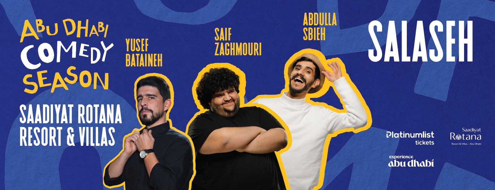 The comedy sensation that's been taking the Gulf by storm, Salaseh – the awesome trio of Abdullah, Saif, and Yusef – is back with their super bold and hilarious stand-up. Catch their return performance at Saadiyat Rotana Resort & Villas on 31 May, during the Abu Dhabi Comedy Season.