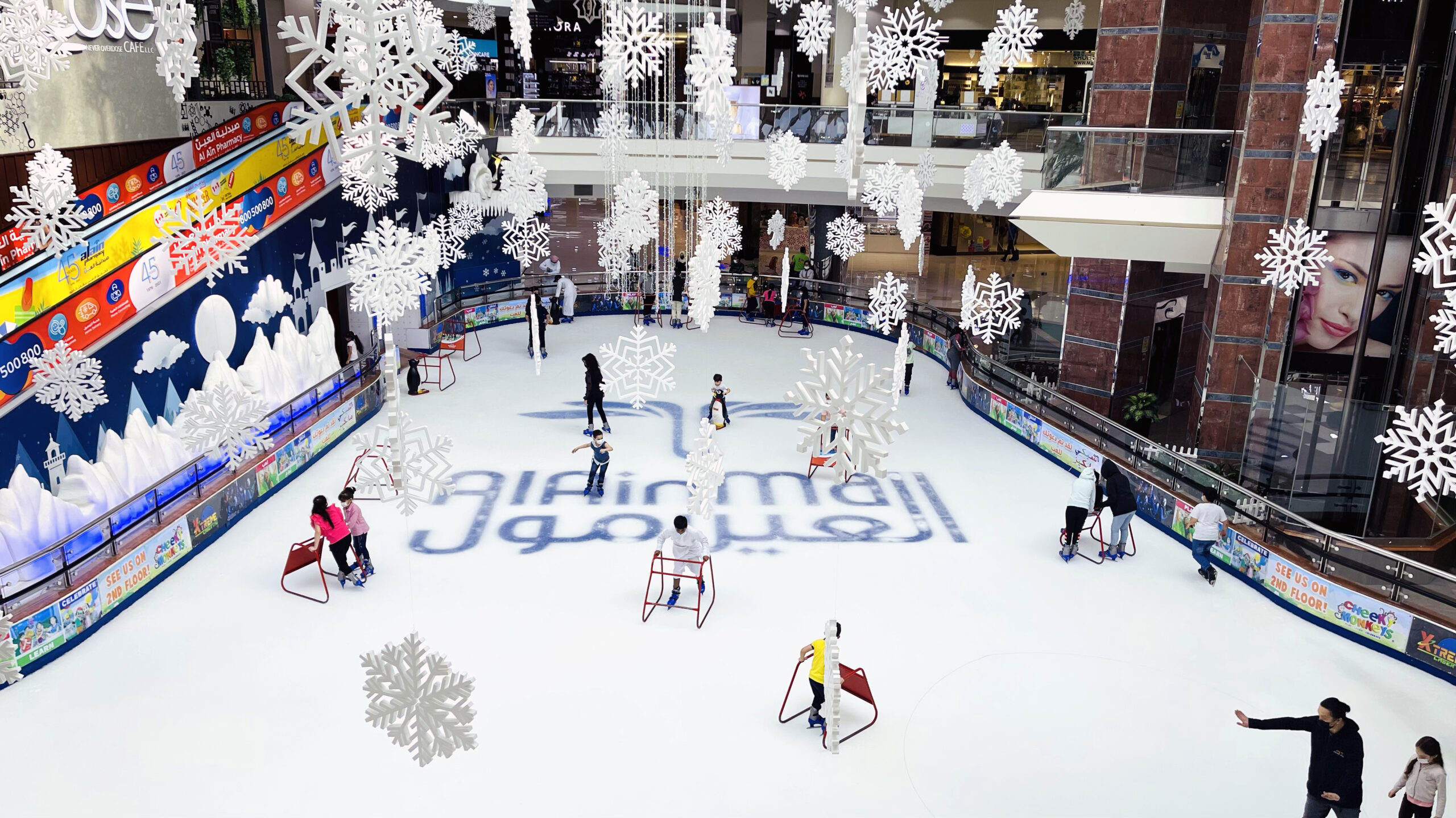 Ice skating offers fun for all ages and abilities at Al Ain Mall. Whether you're a seasoned skater or just starting out, the ice rink welcomes everyone. Beginners can take advantage of private or group lessons starting from AED 600 for ten sessions. Experienced skaters can enjoy a session on the ice for AED 40, including skate rental.