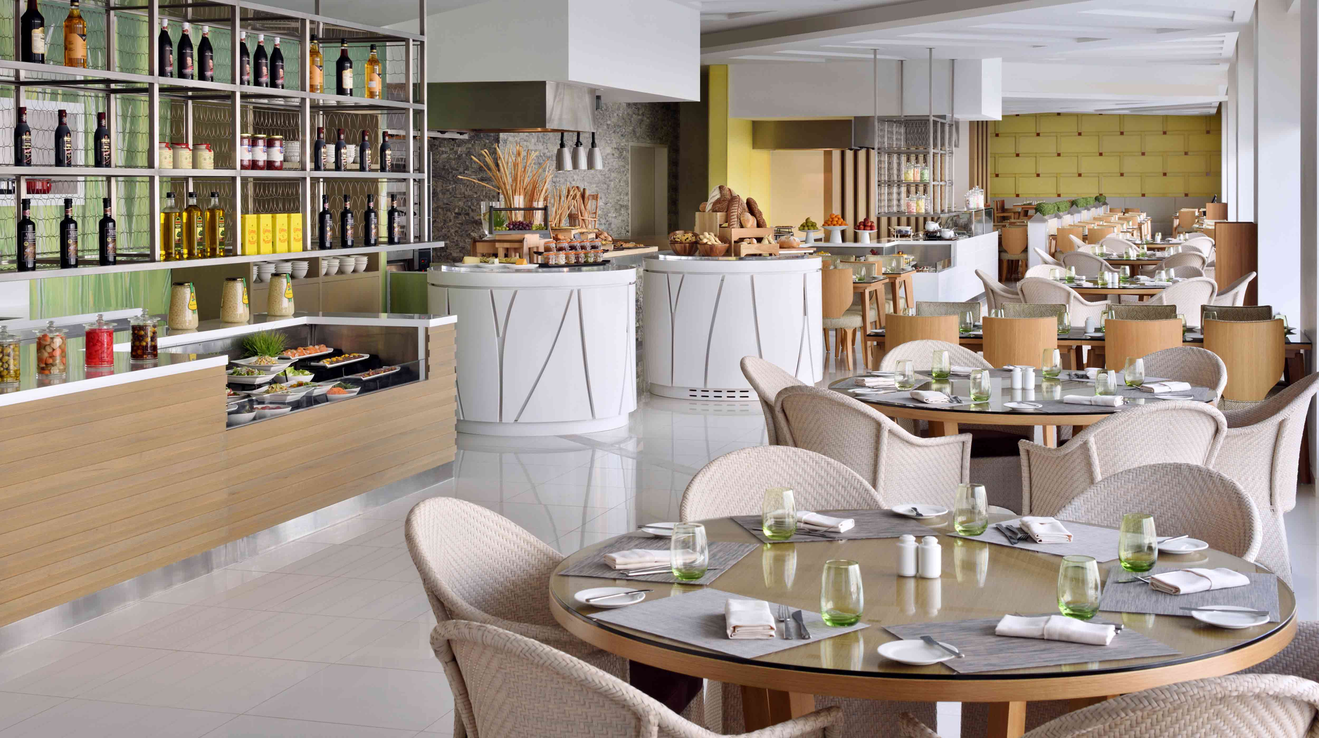 ¿No sabes a qué hora volverás para comer? Estás de suerte, porque el Kuzbara, en el Marriott Hotel Downtown Abu Dhabi, no cierra en todo el día. Degusta lo mejor de la gastronomía asiática, mediterránea y de Oriente Medio en este animado restaurante donde el cilantro es el rey. La cocina abierta, además de mostrar cómo elaboran tus platos,