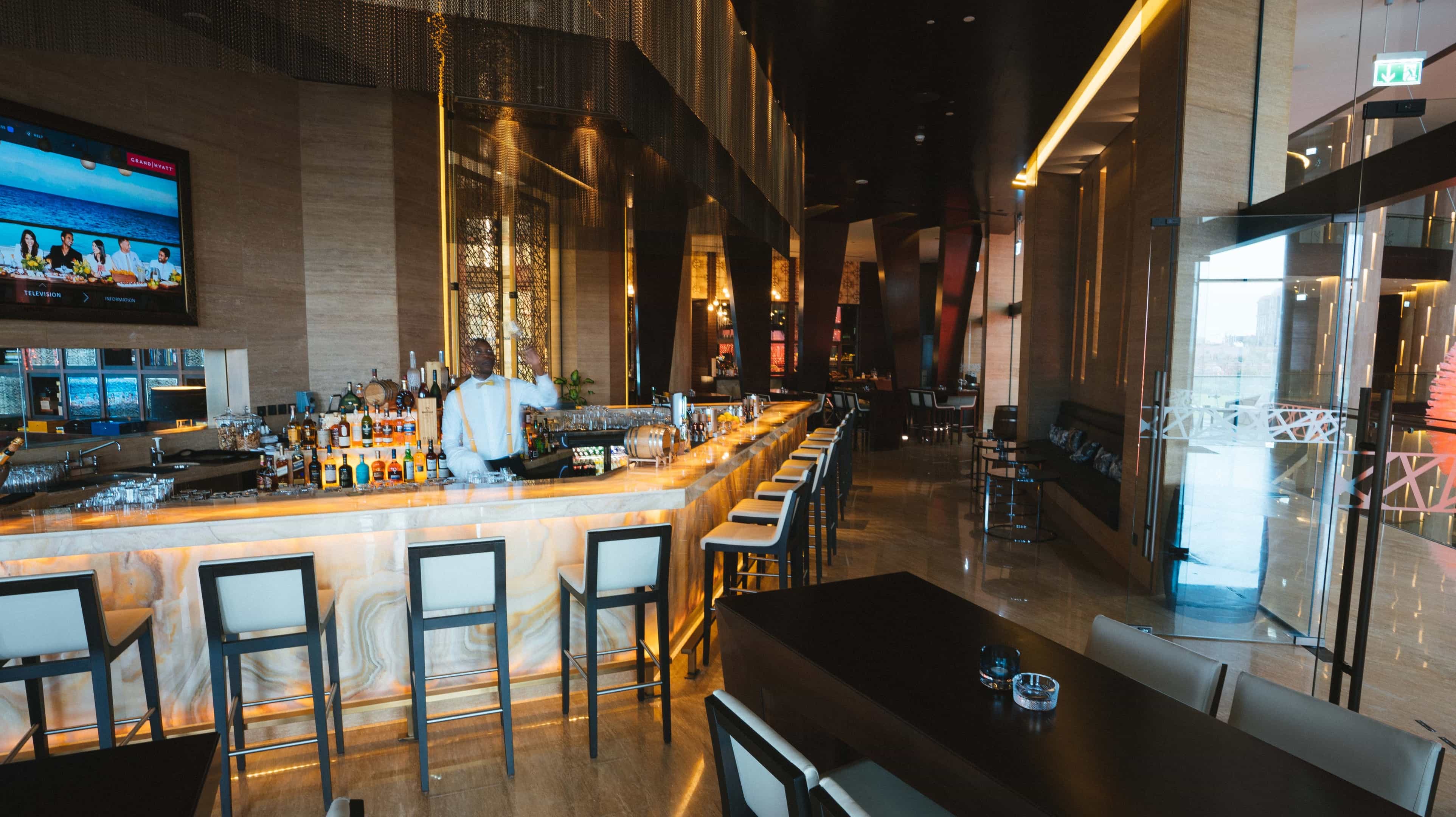 Из бара открывается роскошный вид на Арабский залив. Гостям особенно нравится любоваться отсюда красочным закатом солнца.